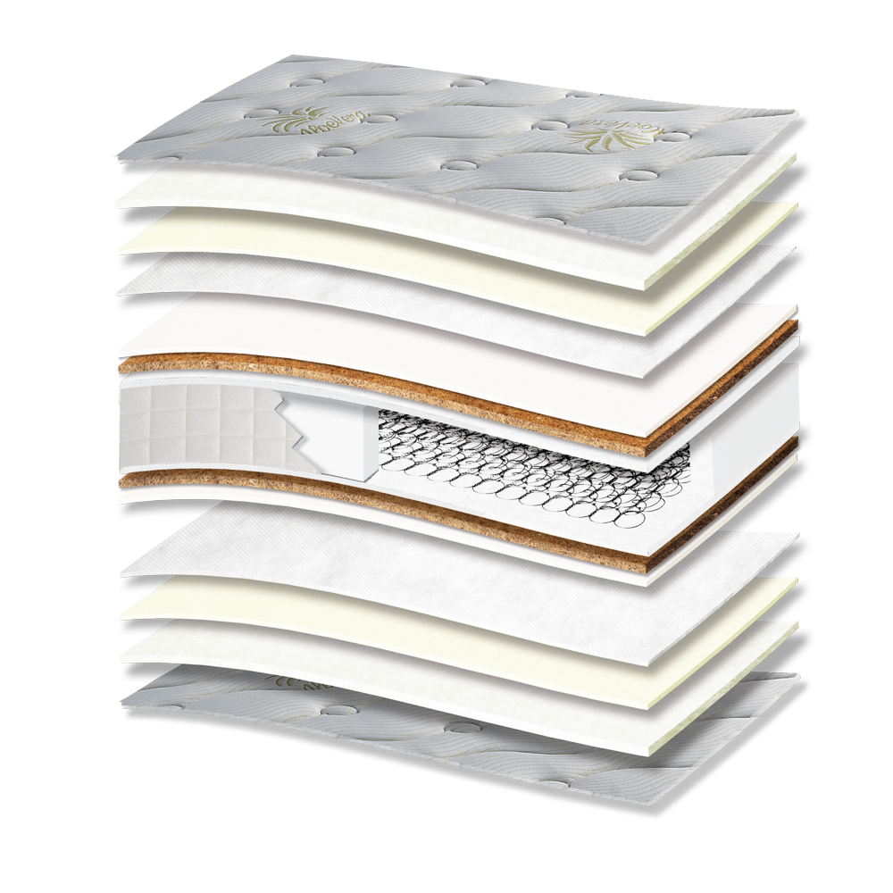 718 Filoxenia Aloe Vera Cotton HR Plus Coco orthopedic hard mattress impregnated with aloe that offers an absolute feeling of freshness and rejuvenation. Made of high-quality foam materials combined with elasticized coco palm, it has the ability to adapt to the curves of the body, ensuring an extremely comfortable feeling while sleeping. Includes Bonnell springs for extra strength and stability. Practical design with zipper and front with handles.