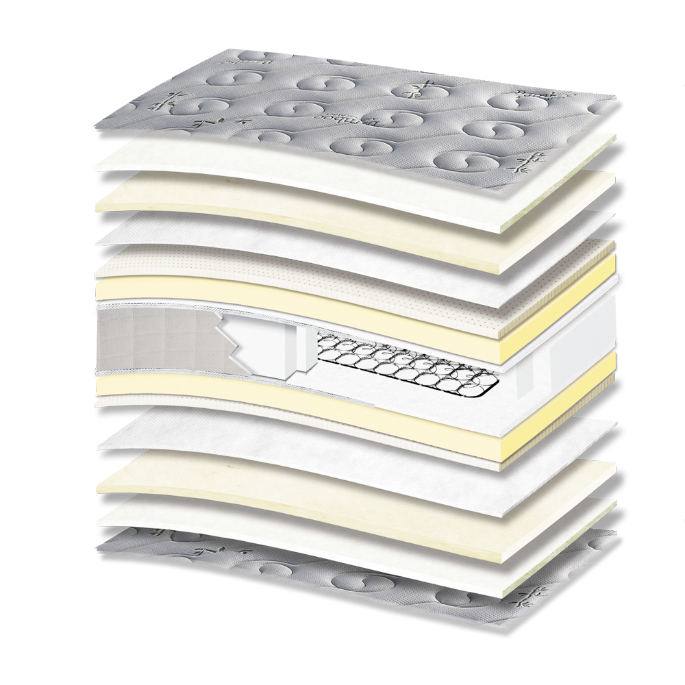746 Filoxenia Bamboo Cotton Wool Latex Afrolatex medium hardness orthopedic mattress with latex and afrolatex filling for perfect adaptation to the body and elasticity. It has a fabric made of ecological Bamboo threads that absorbs moisture, leaving a soft feeling on the body. Durable construction with Bonnell springs that ensure stability and orthopedic support of the spine. The interior includes cotton padding for ideal temperature levels.Materials