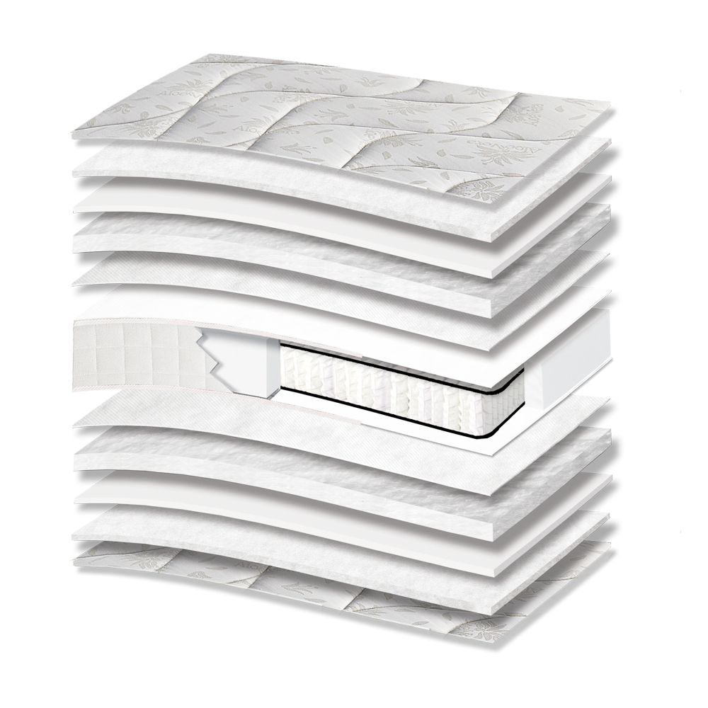 3010 Smart Aloe Cotton Extra Pocket anatomical mattress of medium hardness with independent Pocket springs with lamella that hug the curves of the body, offering personalized pressures at every point. High quality cotton fabric infused with aloe for a soft feel on the skin. Includes perimeter support from foam materials and cotton padding that enhances air permeability, preventing sweating during sleep. It has a fascia with handles and vents.