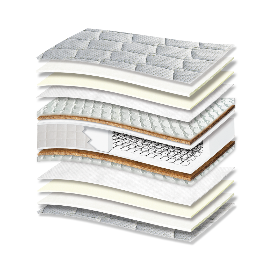 323 Smart Aloe Vera Cotton HR Tablet Coco orthopedic mattress made of high quality fabric infused with aloe for a relaxing and comfortable sleep. Medium firm foam mattress including Bonnell springs and independent Tablet springs for orthopedic spinal support and springy feel. It has cotton wadding that allows the natural ventilation of the mattress, ensuring the appropriate temperature. Practical fascia construction with side handles and vents.