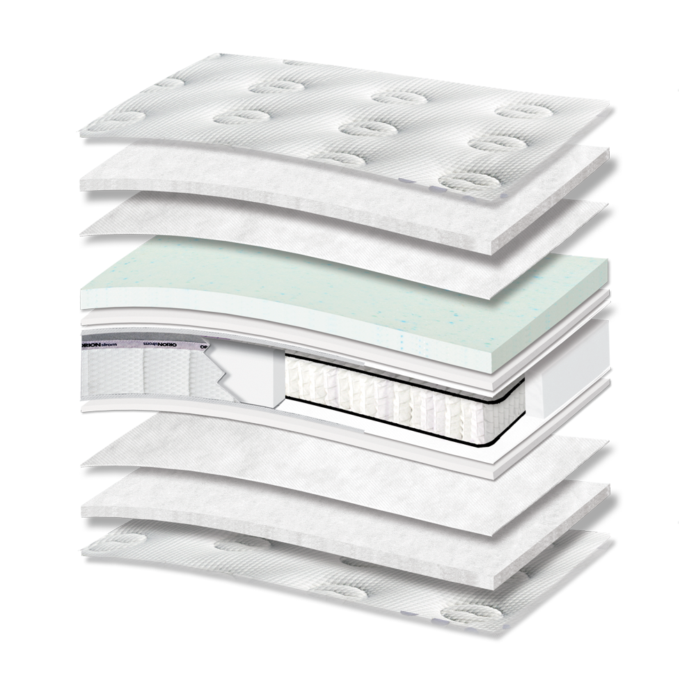 7112 Filoxenia Hotel Energy Memory Gel Plus Pocket Pillowtop anatomic mattress with an ultra-soft memory gel foam top that hugs the body, while the gel granules prevent the development of high temperatures that cause sweating. It has high quality Energy 3A fabric with hypoallergenic properties for a healthy sleeping environment. The bottom layer contains independent pocket springs with lamella that adapt perfectly to every movement, isolating vibrations at every point. It includes a zipper and a sash with practical handles on the side.