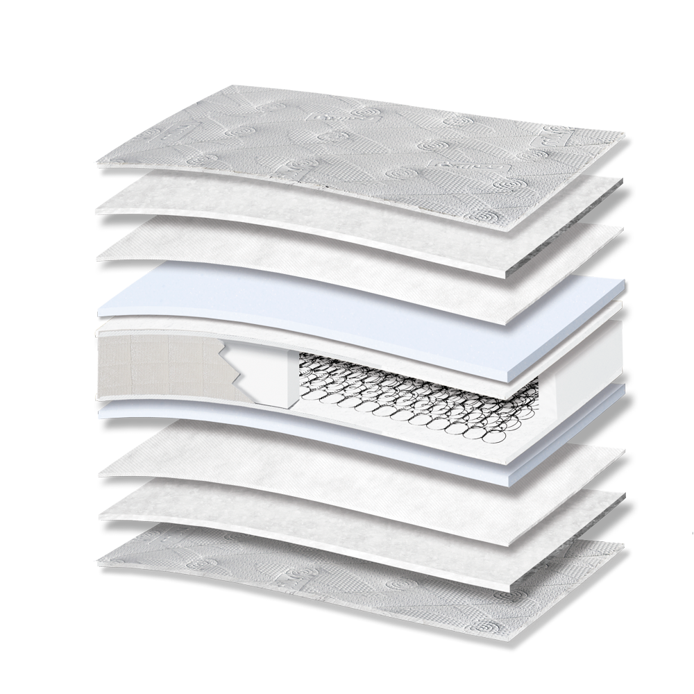 311 Smart Milky Cotton HR orthopedic mattress with excellent quality quilted cotton fabric for incomparable softness. Hard mattress with perimeter support made of foam materials and Bonnell springs that offer stability and at the same time help in the correct positioning of the spine. Includes cotton wadding for effective moisture absorption and high air permeability. Practical design with side zip and fascia with handles and vents.