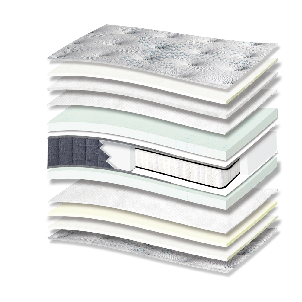 409 Smart Village Cotton Extra Memory Gel Pocket anatomical mattress with added memory gel that provides a cool feeling to the body, preventing sweating. Its interior is made of pocket springs with lamellar for excellent adaptation to every movement and isolation of vibrations. It has an outer shell made of Village 6A fabric with hypoallergenic properties for a healthy sleeping environment. Practical design with a zipper and a band with handles on the side.Materials