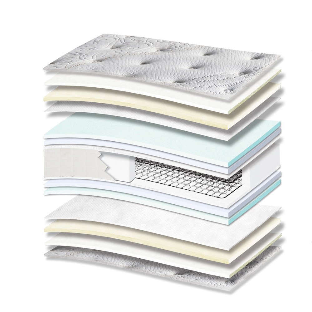 345 Smart Cashmere Cotton Wool Memory Gel HR ορθοπεδικό στρώμα από πολυτελές ύφασμα με σύνθεση visco για μοναδική απαλότητα στο δέρμα. Στρώμα μέτριας σκληρότητας με αφρώδες περιεχόμενο, ενισχυμένο με κόκκους memory gel που προσαρμόζονται στο περίγραμμα του σώματος, μειώνοντας την εφίδρωση. Είναι κατασκευασμένο από ελατήρια Bonnell που εξασφαλίζουν σταθερότητα και ισορροπία κατά τη διάρκεια του ύπνου. Ένα πρακτικό στρώμα με φερμουάρ στο πλάι και φάσα με χερούλια και εξαεριστικά.Υλικά