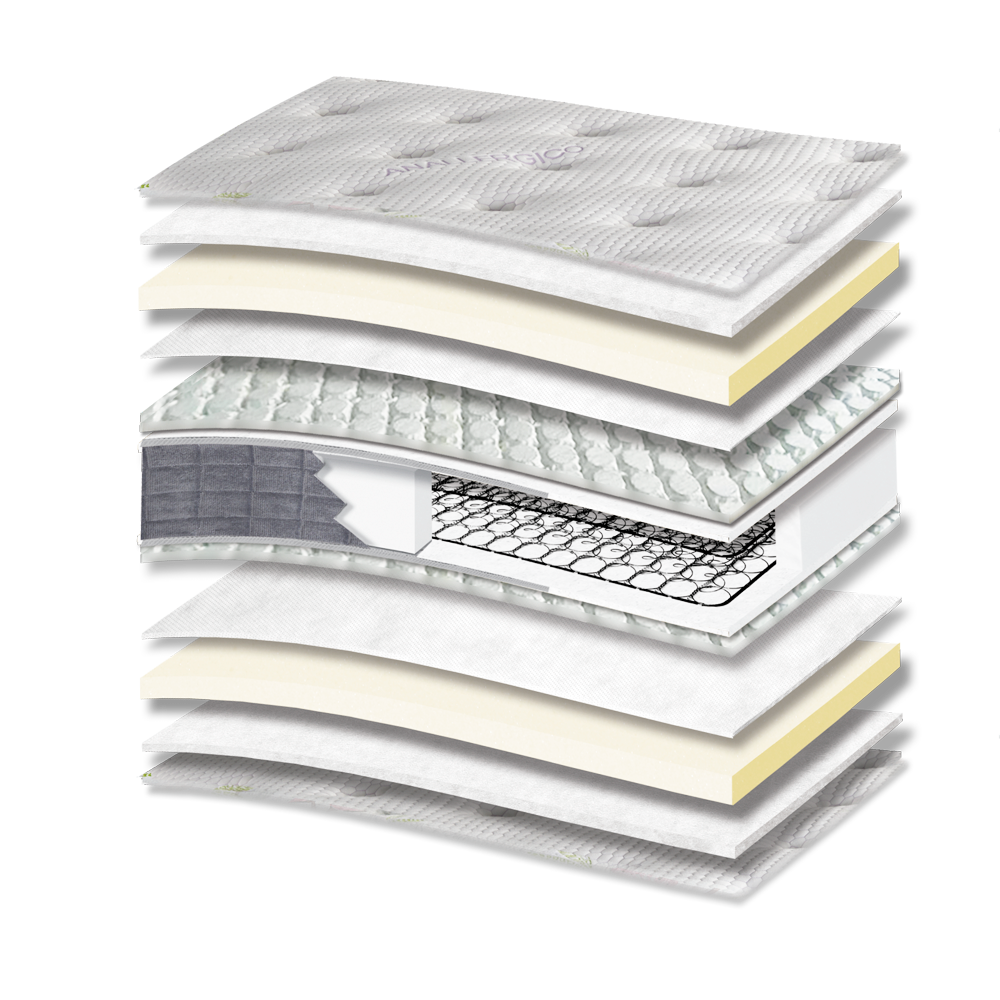542 Comfort Analergico Cool Max Hyper Soft Tablet υποαλλεργικό στρώμα δύο όψεων με ανεξάρτητα ελατήρια tablet σε αρμονικό συνδυασμό με ελατήρια Bonnell και αφρώδη υλικά υψηλής ποιότητας, προσφέρει εξαιρετικά άνετη αίσθηση και ελαστικότητα στο σώμα. Η μία όψη διαθέτει υποαλλεργικό ύφασμα Analergico 6A, ένω η άλλη όψη περιλαμβάνει ενίσχυση Cool Max που εξασφαλίζει δροσερή αίσθηση όλο το καλοκαίρι. Πρακτική σχεδίαση με φερμουάρ και χερούλια στο πλάι. Ένα εξαιρετικό στρώμα ιδανικό για όλο το χρόνο.Υλικά